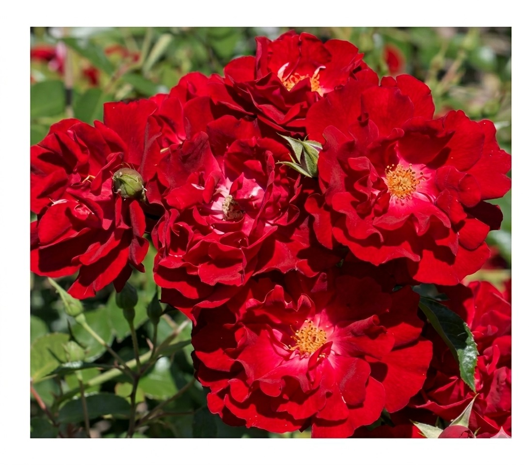 Zastosowanie: doskonale sprawdza się jako róża okrywowa – sadzona w grupach tworzy intensywnie czerwony, kwitnący dywan, który przyciąga wzrok z daleka. To idealny wybór do nasadzeń rabatowych, na obrzeża ścieżek czy niskie skarpy, gdzie może tworzyć tło dla bylin lub innych róż w jaśniejszych odcieniach. Jej zwarty pokrój i silne rozkrzewienie czynią ją również doskonałą rośliną do pojemników. Dzięki wysokiej odporności i długiemu kwitnieniu jest idealnym rozwiązaniem dla ogrodników poszukujących niezawodnej, łatwej w pielęgnacji odmiany o klasycznym uroku i wyjątkowej trwałości.